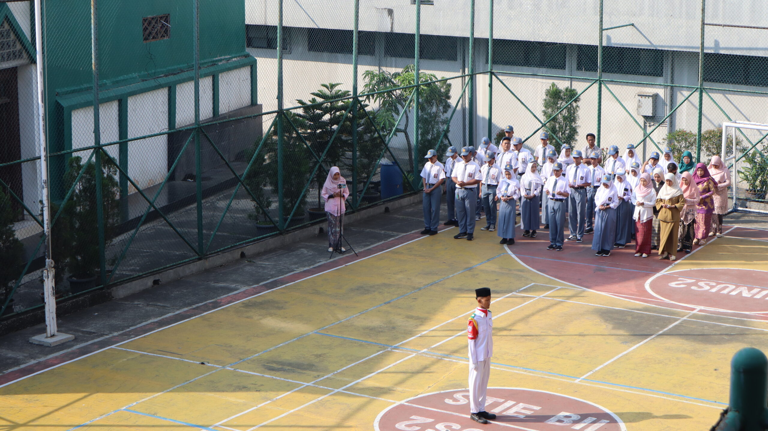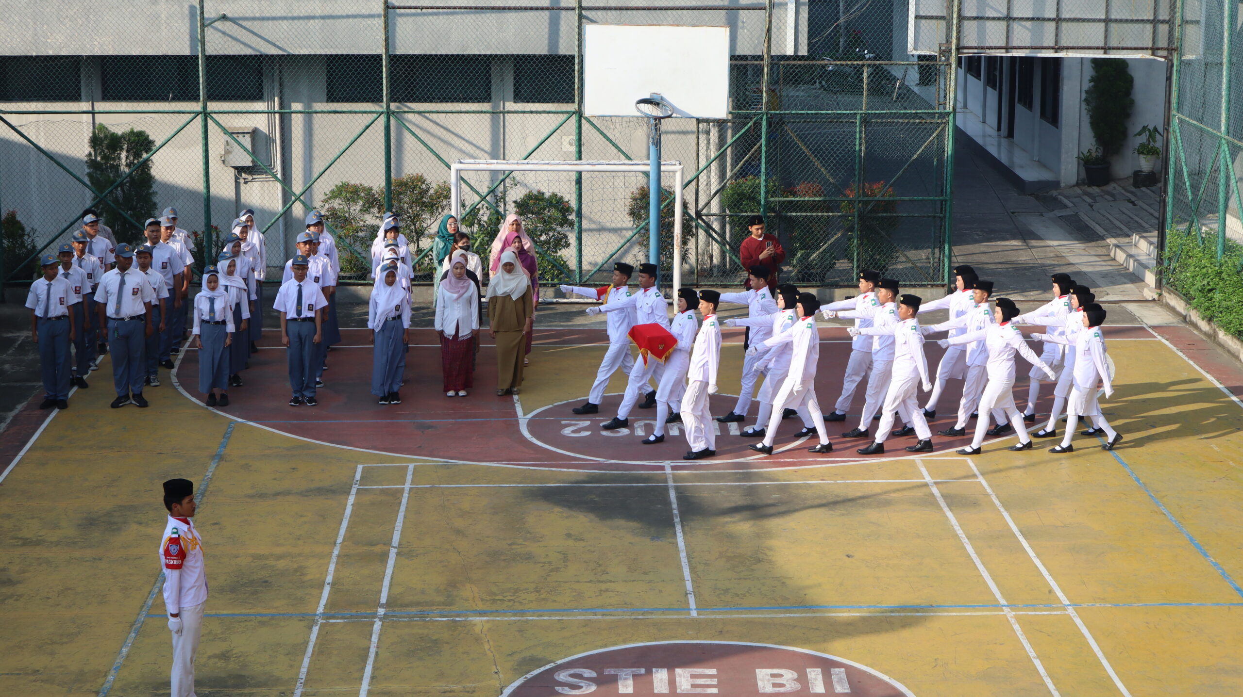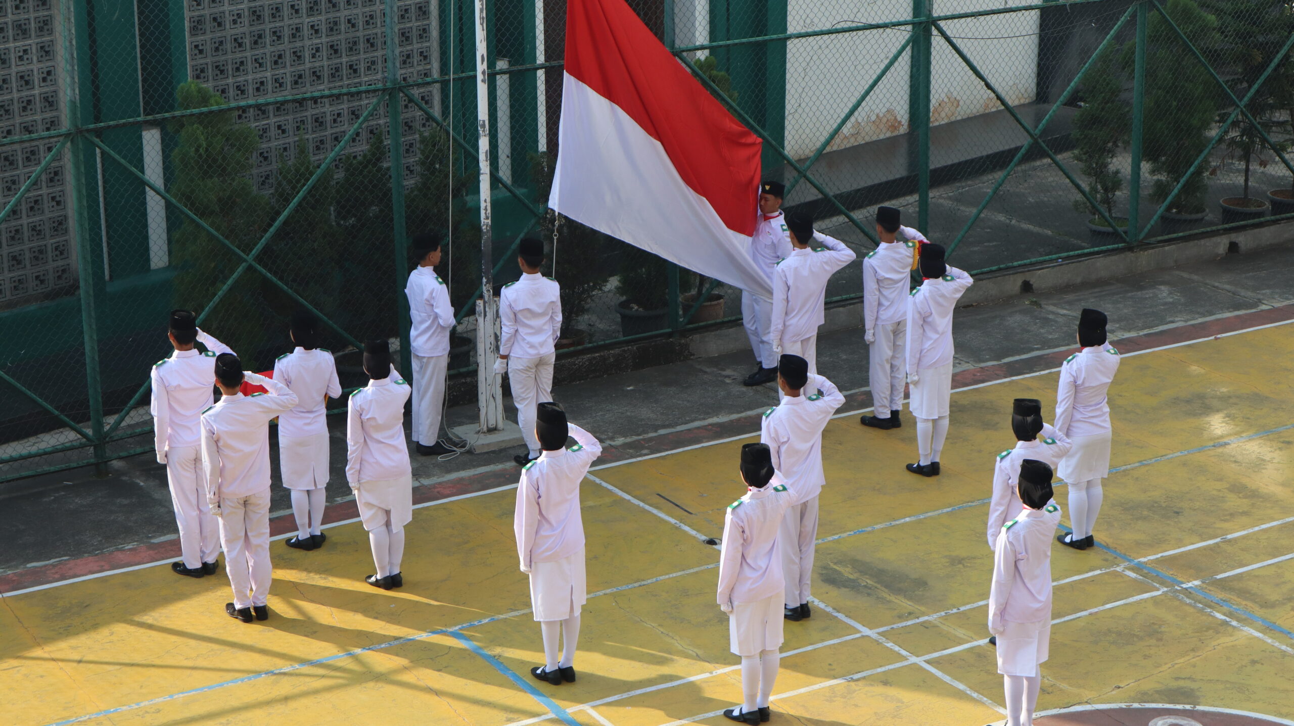 Kegiatan ini diikuti oleh siswa, guru, serta seluruh warga sekolah yang mengenakan pakaian rapi dan atribut lengkap. Pasukan pengibar bendera menjalankan tugasnya dengan penuh tanggung jawab, diiringi lagu kebangsaan Indonesia Raya yang dinyanyikan dengan penuh semangat oleh seluruh peserta upacara.